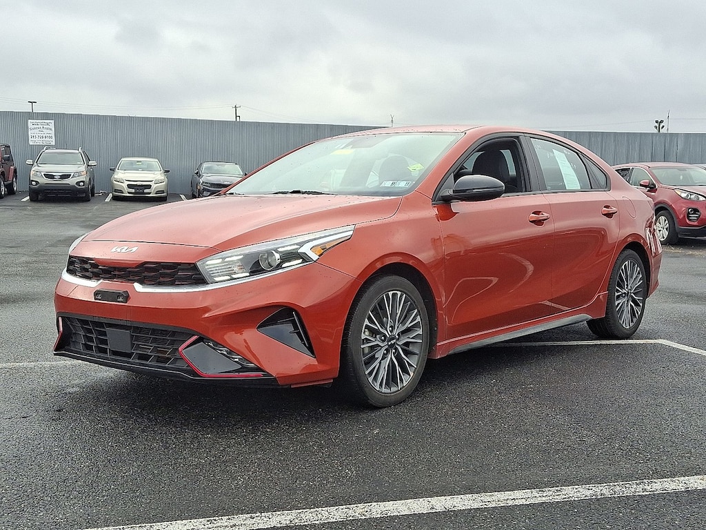 GT-Line Technology Package (Electronic Parking Brake (EPB), Forward Collision Avoidance-Assist - Cyclist, Navigation-Based Smart Cruise Control (NSCC), and Smart Cruise Control w/Stop & Go), Kia Certified Pre-Owned Certified, 17" x 7.0J Alloy Wheels, 4-Wheel Disc Brakes, 6 Speakers, ABS brakes, Air Conditioning, Alloy wheels, AM/FM radio: SiriusXM, Apple CarPlay & Android Auto, Auto High-beam Headlights, Automatic temperature control, Brake assist, Bumpers: body-color, Carpet Floor Mats, Cloth & SynTex Seat Trim, Delay-off headlights, Driver door bin, Driver vanity mirror, Dual front impact airbags, Dual front side impact airbags, Electronic Stability Control, Emergency communication system, Exterior Parking Camera Rear, Front anti-roll bar, Front Bucket Seats, Front Center Armrest, Front dual zone A/C, Front fog lights, Front reading lights, Front wheel independent suspension, Fully automatic headlights, Heated door mirrors, Illuminated entry, Leather Shift Knob, Leather steering wheel, Low tire pressure warning, Navigation System, Occupant sensing airbag, Outside temperature display, Overhead airbag, Overhead console, Panic alarm, Passenger door bin, Passenger vanity mirror, Power door mirrors, Power steering, Power windows, Radio data system, Radio: 10.25" Display Audio, Rear seat center armrest, Rear window defroster, Remote keyless entry, Security system, Speed control, Split folding rear seat, Spoiler, Sport steering wheel, Steering wheel mounted audio controls, Tachometer, Telescoping steering wheel, Tilt steering wheel, Traction control, Trip computer, Turn signal indicator mirrors, and Variably intermittent wipers.