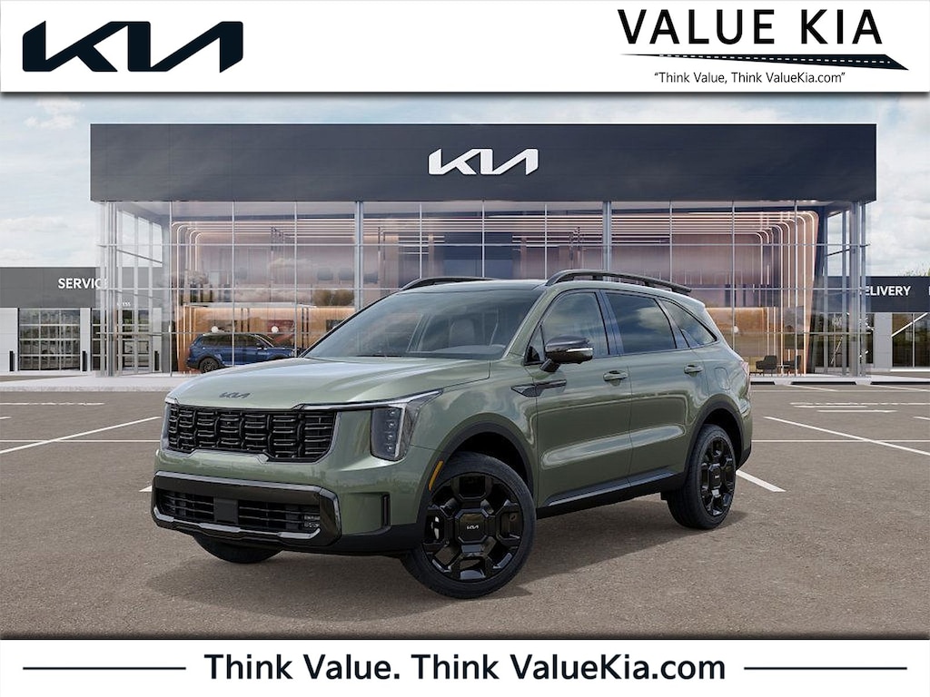 Jungle Green 2026 Kia Sorento X-Line SX AWD 8 Speed Dual Clutch 2.5L I4 DGI Turbocharged DOHC 16V LEV3-SULEV30 281hp AWD.